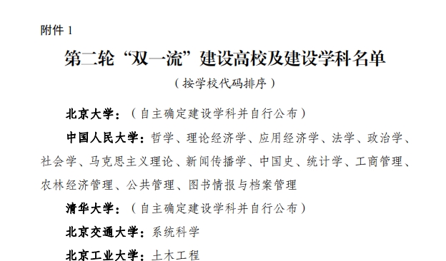 2022年2月,教育部公布了第二轮“双一流”建设高校及建设学科名单,共147所建设高校。