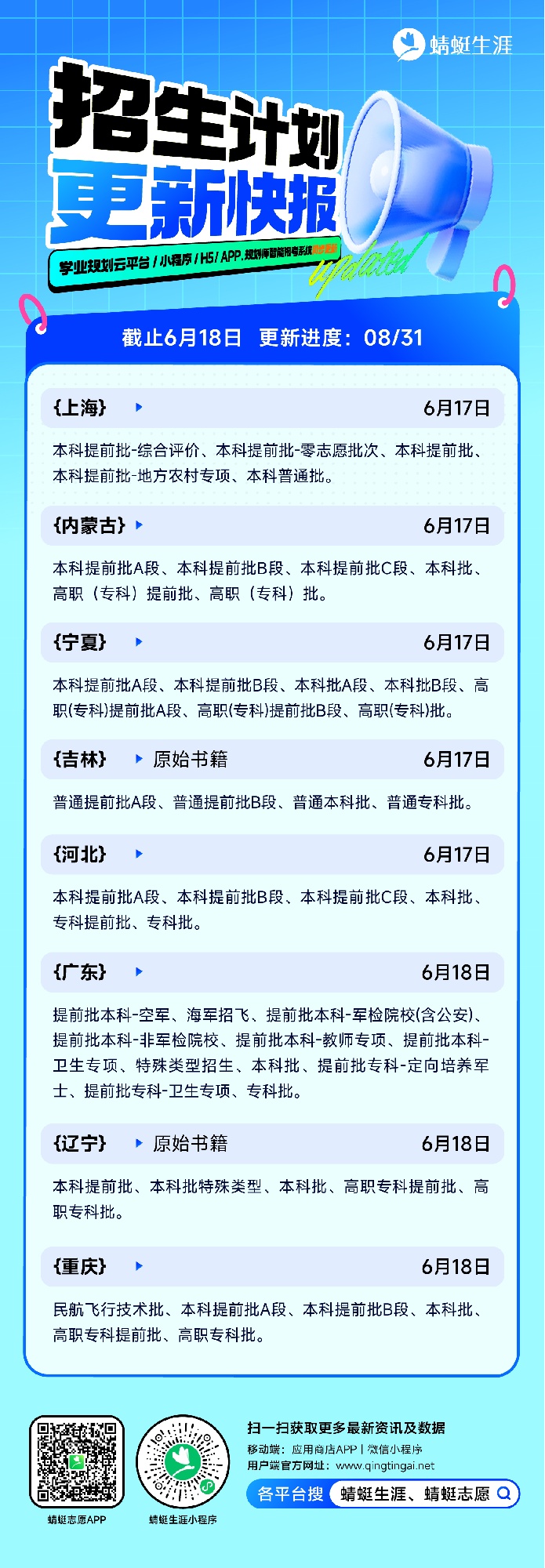 ✅更新批次:民航飞行技术批、本科提前批A段、本科提前批B段、本科批、高职专科提前批、高职专科批~