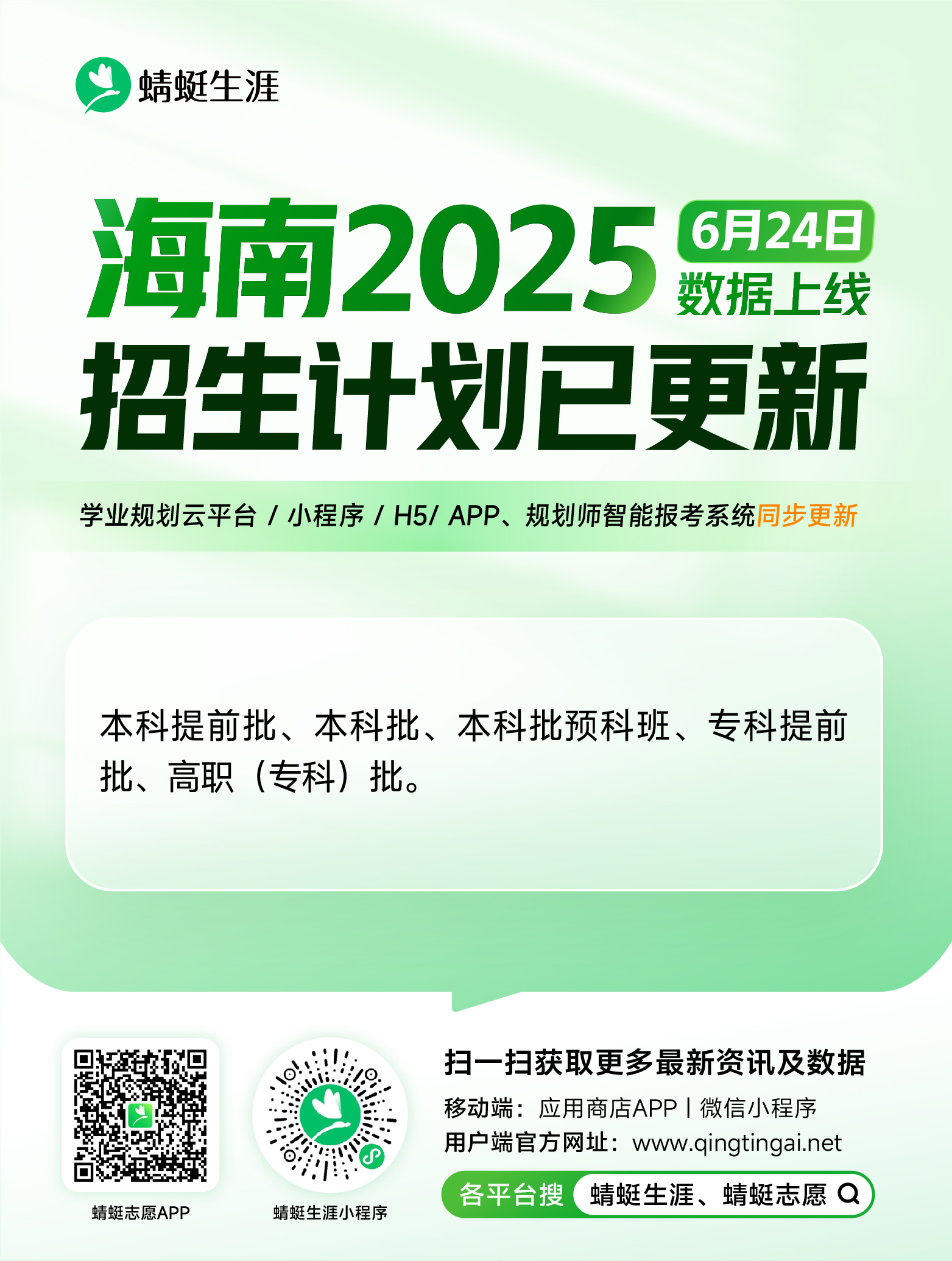 🎇海南 2025 招生计划蜻蜓新鲜出炉啦!原始书籍同步上线! 数据更新 6月25日 -常程- 取消关注 关注 私信 🎇海南 2025 招生计划蜻蜓新鲜出炉啦!原始书籍同步上线! ✅更新批次:本科提前批、本科批、本科批预科班、专科提前批、高职(专科)批~ 💪数据源自省招办官方书籍,经蜻蜓数据中心严格审核,靠谱有保障!快到系统体验吧~